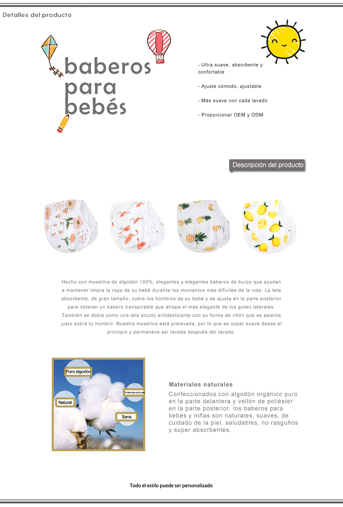 Hecho con muselina de algodón 100%, con elegantes baberos burpy que ayudan a mantener limpia la ropa de su bebé durante los momentos más difíciles de la vida. La tela absorbente de gran tamaño cubre las espaldas de su bebé y se ajusta en la parte posterior para obtener un babero transpirable que atrapa el más cómodo de los goteo laterales. También se dobla como una tela eructo antideslizante con su forma de riñón que se asienta justo sobre tu hombro. Nuestra muselina está prelavada, por lo que es súper suave desde el principio y permanece así lavada después del lavado.